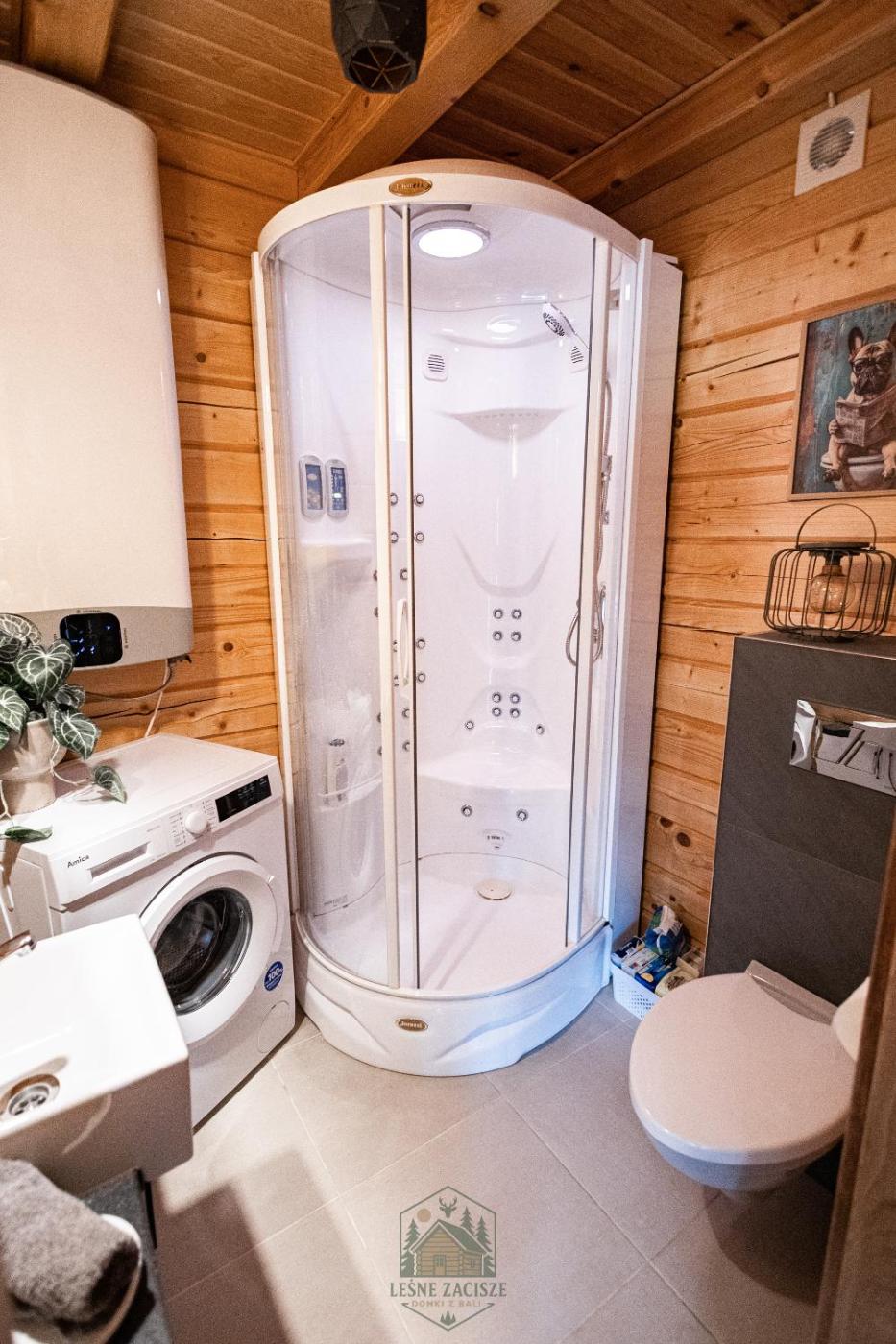 Domek z 2 sypialniami. This luxurious chalet features a hot tub, a spa bath and a sauna. This spacious chalet comprises 1 living room, 2 separate bedrooms and 1 bathroom with a shower and free toiletries. Guests will find a stovetop, a refrigerator, kitchenware and a microwave in the well-fitted kitchen. The chalet also provides guests with a barbecue. The air-conditioned chalet provides a flat-screen TV with streaming services, a washing machine, a private entrance, a coffee machine as well as garden views. The unit offers 5 beds. Domek - 8 osobowy. Powierzchnia pokoju ok.: 80 mkw.